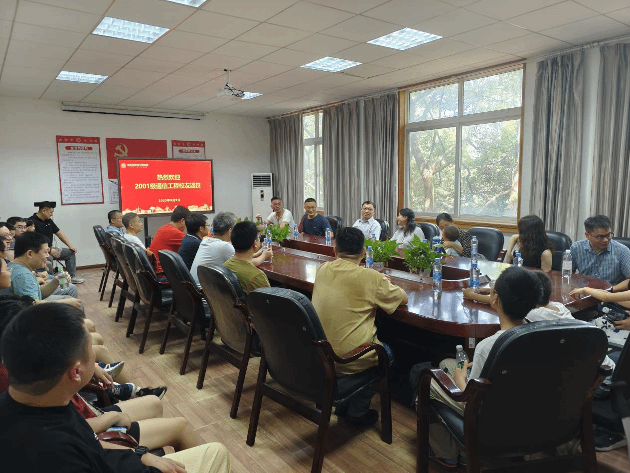2001级通信工程1-4班校友,饱含对母校的深切眷恋,从祖国各地奔赴而来,重返阔别多年的校园,共叙师生情、同窗谊,感受母校蓬勃发展,见证青春成长轨迹。我院副院长罗晖、时任班级辅导员余玉华等陪同参观校史馆,并与校友合影留念。