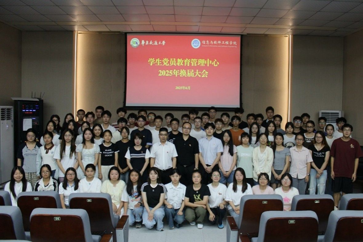 学生党员教育管理中心2025年换届大会在南区教5栋108报告厅举行。学院党委书记魏永峰、党委副书记冯荣刚出席会议。会议由党委组织员黄芳主持,党委兼职组织员刘通及党教中心新老成员共60余人参加。