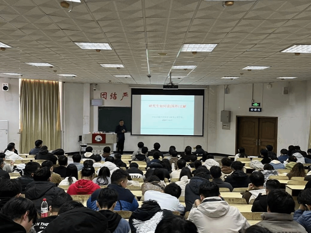 为进一步促进优良学风建设,提升研究生文献阅读能力,营造风清气正、求真务实的学术氛围,形成尊重知识、崇尚创新的浓厚氛围,引导研究生树立正确的科学道德观,11月28日,信工学院副院长官雪辉教授在南图101教室为2023级软件工程专业及2024级全体研究生开展学术诚信教育与文献阅读培训。