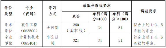(5)软件工程调剂要求考生一志愿报考专业为软件工程(083500)、计算机科学与技术(081200)、电子信息(085400)。