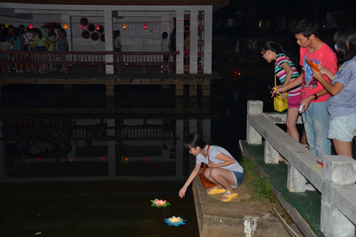 养心湖畔放荷花灯