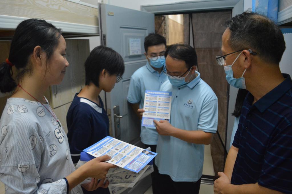 在走访看望的过程中,何仲坚、艾国金与新生进行亲切交谈,并对初次离家远行求学的同学送去关怀,帮助其尽快适应大学生活。同时,何仲坚一行叮嘱新生要提高自己的防诈意识,学会识诈防诈反诈。
