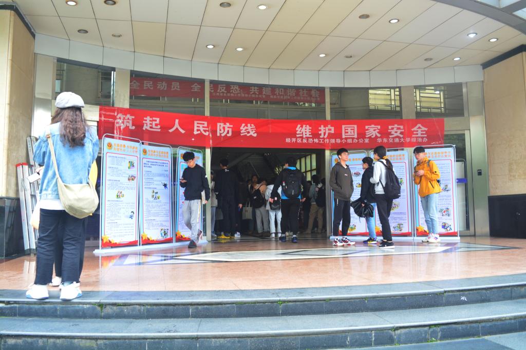 反恐怖小组工作人员就反恐知识向广大师生做了科普,详细介绍了,什么是恐怖主义、什么是恐怖活动、恐怖主义与宗教关系、谁是最高反恐机构以及重点防范机构有哪些。现场播放反恐宣传片,巩固反恐知识。与此同时,工作人员还为参与互动环节的同学赠送了防恐知识手册、折扇等纪念品。