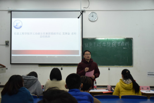 1月11日,信息工程学院团学组织述职大会于教14栋206室召开,信息学院学工办副主任、团委副书记艾国金、杨青出席会议,学生会及团学组织各部门成员与会。