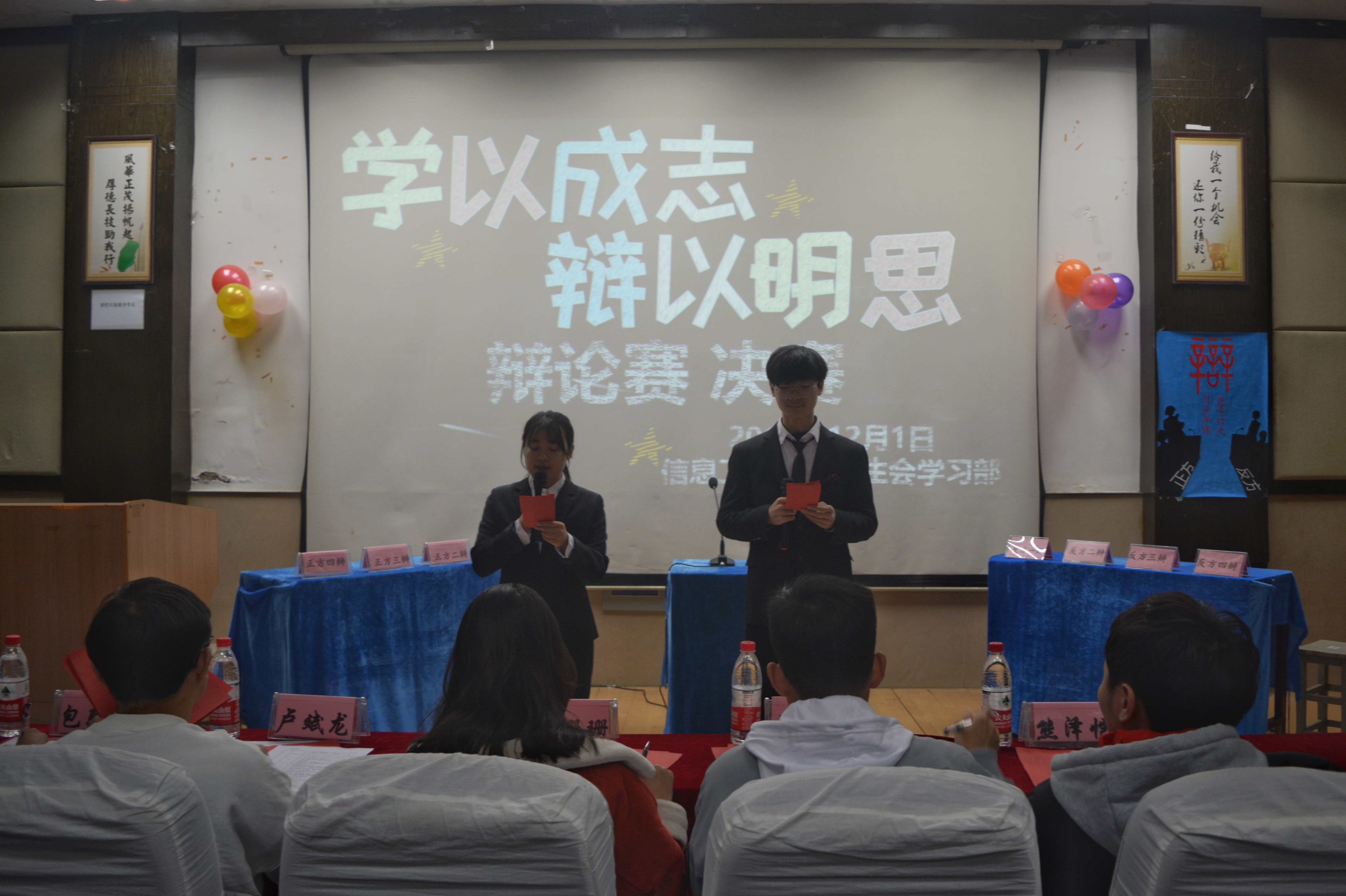 为丰富校园课余文化生活,拓展学生语言运用能力,引导他们多元化发展,12月1日,信息学院于图书馆106教室开展“学以成志,辩以明思”辩论赛决赛。禁漫