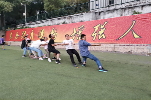 “一二一、一二一...”在游戏“三人四足”过程中,各组成员男女搭配,努力向着同一个终点前进,到达终点时欢呼雀跃,场内气氛再度升温。拔河过程中,四组队伍自行搭配,整合成两队,以三局两胜的赛制,进行拔河比赛。赛后,获胜的大组变回小队一决胜负,并邀请班委团与最终获胜队伍比拼。