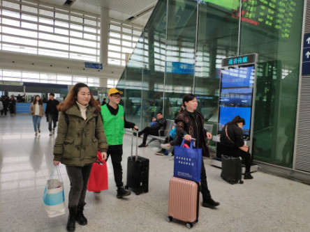 志愿工作开始前,车站负责人就车站设施、突发情况、应对措施、行为态度等几个方面,向志愿者们做详细介绍,并为大家安排相应服务岗位。志愿者们纷纷前往不同岗位参与工作,各司其职。同学们明确目标后,立即进入工作状态。有的乘客不会取票,志愿者们耐心地教他们如何操作;遇到行李较多的旅客,志愿者们主动上前帮助他们;在进站口,志愿者协助车站工作人员引导乘客有序进站;同时,负责流动巡逻的志愿者们也在为旅客们热心指路。