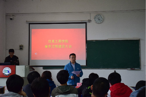 为进一步弘扬健康文明的寝室文化,优化学习生活环境,4月11日,信息学院于逸夫楼109室开展寝室文明建设大会,信息学院学工办主任兼团委书记陈文锦、辅导员艾国金出席会议,15-18级各班副班长及被表扬寝室寝室长与会。