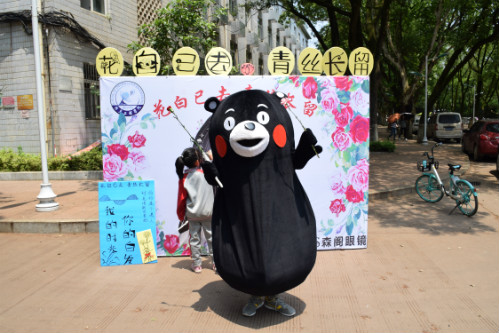 在活动摊位处,一副巨大的印有母亲头像、布满白发的插画引得众多同学驻足。他们小心翼翼地拔去插画上母亲的一根根“鹤发”。工作人员介绍道:“母亲的‘白发’是用白纸包裹康乃馨花束制成的,大家可以把‘鹤发’从插画上拔出,帮母亲留住时光,重返青春。”