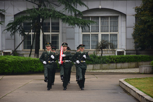 国旗护卫队踏着整齐的步伐向升旗台走来