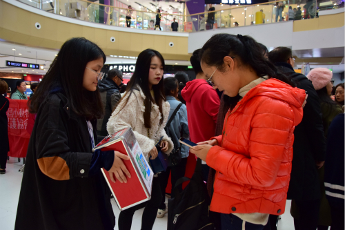 为给流浪小动物寻找新家,帮助它们度过温暖的寒冬,11月11日,信息学院青协理事会成员前往西湖区万达广场,协助南昌市小动物保护协会举办第40届南昌领养日公益活动。
