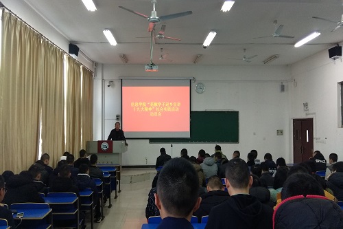 当日下午,信息学院“花椒学子返乡宣讲十九大精神”社会实践活动动员会于逸夫楼207召开,何仲坚、黄清华、陈文锦出席会议,信息学院全体学生党员、国家奖学金及国家励志奖学金获得者共一百余名学生参加会议,会议由陈文锦主持。