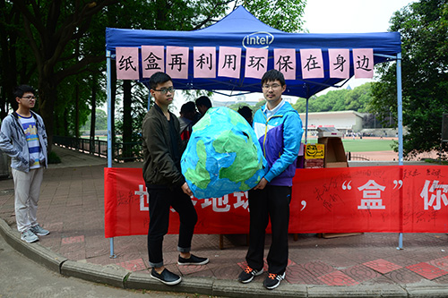 为呼吁广大师生保护地球的同时拥有一个良好的生活环境。4月22日,信息学院15级信息工程二班全体同学在南区田径场门口开展了“世界地球日,‘盒’你一起变废为宝”的活动。