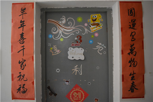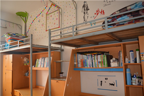“绿竹环绕在寝室周围,青藤爬满栏杆,使人置身于清幽之中”,这是学生9栋501寝室的壁纸设计,他们将寝室贴满以绿色为主题的壁纸,清新的色彩和立体感的设计令人眼前一亮。9栋437寝室名为“等一个人咖啡”,以“每杯咖啡都有不同的口味,每个人都有不同的性格”为口号,墙面上贴满砖式壁纸,形式新颖独特。学11栋201-1寝室则以蓝色为主色调,展现女生寝室的温馨与细腻,飘逸的窗帘,可爱的墙画,处处透露着家的味道。