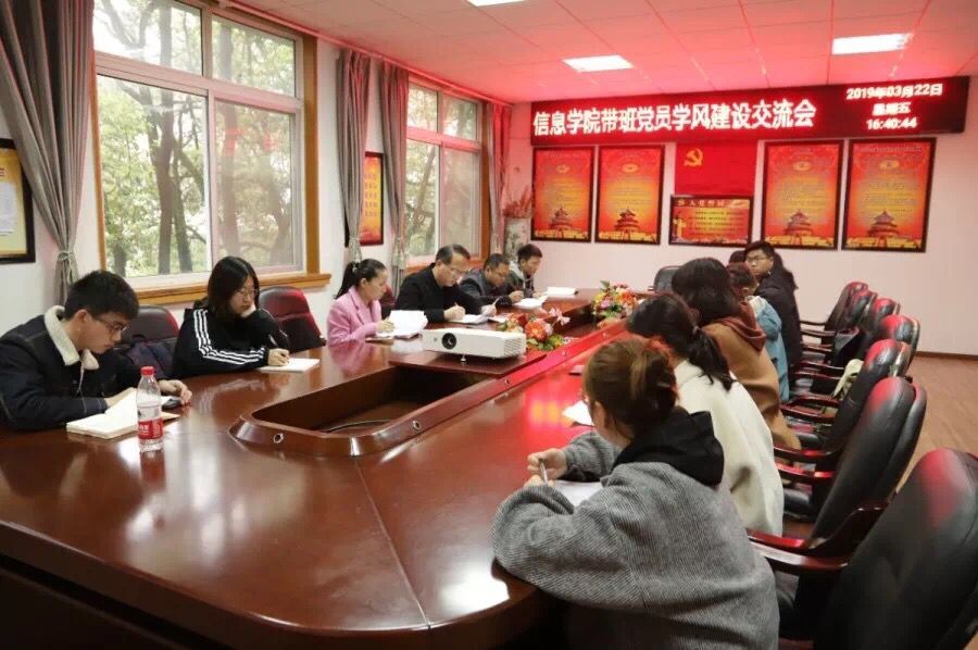 2019年3月22日,距离新学期开学过去整整一个月,就带班党员们所带的18级新生的学风建设,信息学院组织召开了带班党员学风建设交流会,信息学院党委副书记何仲坚,学工办主任兼团委书记陈文锦老师,学工办副主任兼团委副书记杨青老师出席会议。