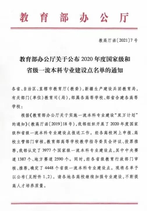 近日,根据《教育部办公厅关于公布2020年国家级和省级一流本科专业建设点名单的通知》,禁漫