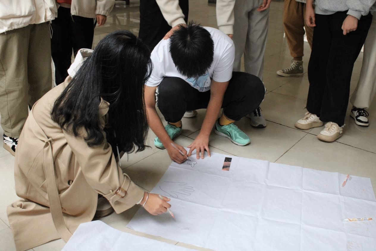 同学们以主持人为中心围成一个圆圈,在主持人的介绍中,活动开始。活动以“绕口令”为暖场小游戏,使同学们快速融入轻松愉悦的氛围当中。随后,心素会成员科普了多个心理小知识,推进了学校的心理健康教育。同学们积极参与了“007”、“联想游戏”、“贴膏药”等游戏环节,并分享了自己的幸福瞬间。现场气氛活跃,通过合作交流,同学们之间的关系更加紧密,同时也获得了积极的情绪体验。活动最后,同学们用蜡笔在纸张上画出了自己的手掌轮廓。五彩斑斓的手掌轮廓,犹如他们心中的梦想丰富多彩。这些手掌轮廓汇聚在一起,形成了一幅充满活力和希望的画卷。这不仅是对未来的美好祝愿,也是对当下生活的珍惜和感激。