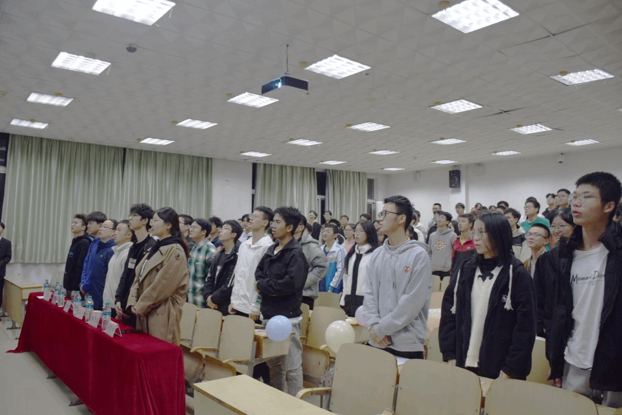活动分为“互动分享、感恩勉励、加冠仪式、未来寄语”四个部分。活动开始,全体同学起立奏唱《光荣啊,中国共青团》,铿锵的歌声彰显了信息学子昂扬向上的精神风貌。
