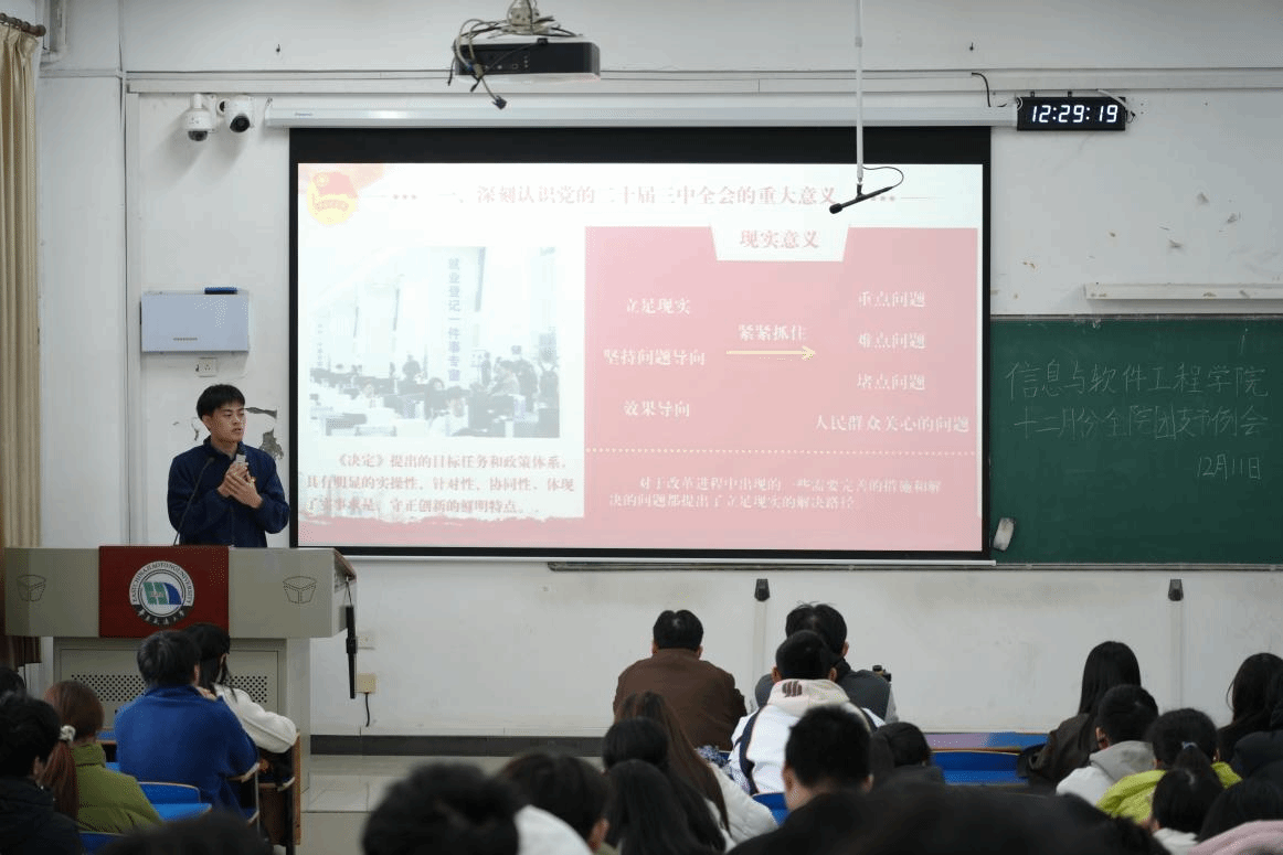 为深入学习贯彻党的二十届三中全会精神,引领信工青年肩负时代使命,2024年12月11日,青年讲师团成员刘通为青年团干讲述题为“深入学习贯彻党的二十届三中全会精神,为推进中国式现代化挺膺担当”的主题团课。