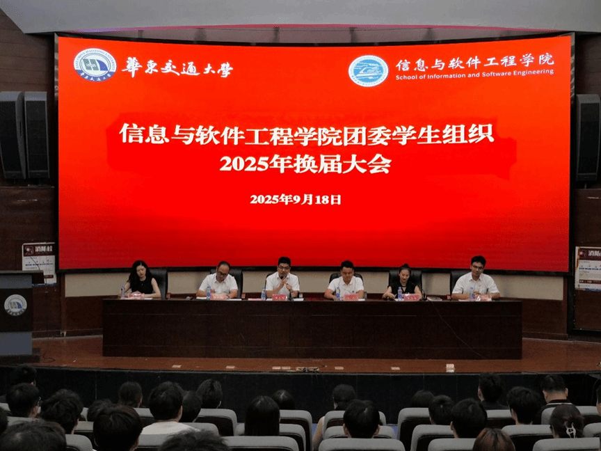 2025年团学组织换届大会在北区图书馆圆形报告厅隆重召开。校团委副书记高旭,学院党委书记魏永峰,党委副书记冯荣刚,团委副书记郭招男、肖志鹏、洪亚聪等出席会议。大会由院团委书记李萌萌主持。