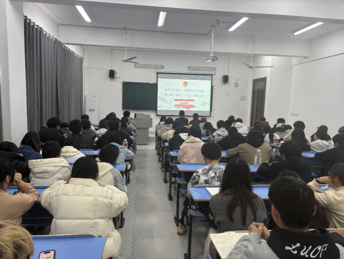 为深入学习贯彻党的二十届四中全会精神,引导广大学生深刻理解、准确把握中国式现代化的理论内涵与实践要求,推动全会精神在青年学生中入脑入心,强化思想引领与团的组织建设,12月9日,信工学院在进贤教学点教学楼313教室开展了党的二十届四中全会精神团支书宣讲团培训会议。本次培训由宣讲团指导老师计晓洁主讲,团委副书记洪亚聪、宣讲团指导老师曾小康及党的二十届四中全会精神团支书宣讲团成员参会。
