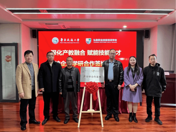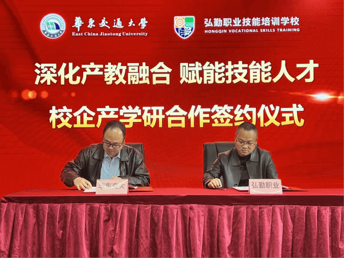 毕业生的专业能力与综合素质,并表示期待与学院开展更深层次的合作。经过深入交流,双方在共建实习实践基地、联合开发课程、合作举办技术讲座与竞赛、推动科研项目及成果转化等方面,达成了一系列合作意向。学院党委副书记冯荣刚,弘勤职业技能培训学校副校长舒景分别代表双方签署校企共建产学研基地协议。
